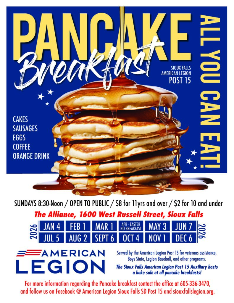 and follow us on Facebook @ American Legion Sioux Falls SD Post 15 and siouxfallslegion.org.